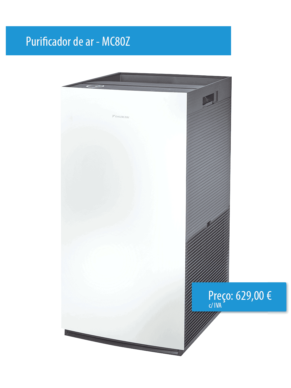 O sistema Daikin MC80Z com Wi-Fi proporciona ar limpo em grandes espaços até 124 m²