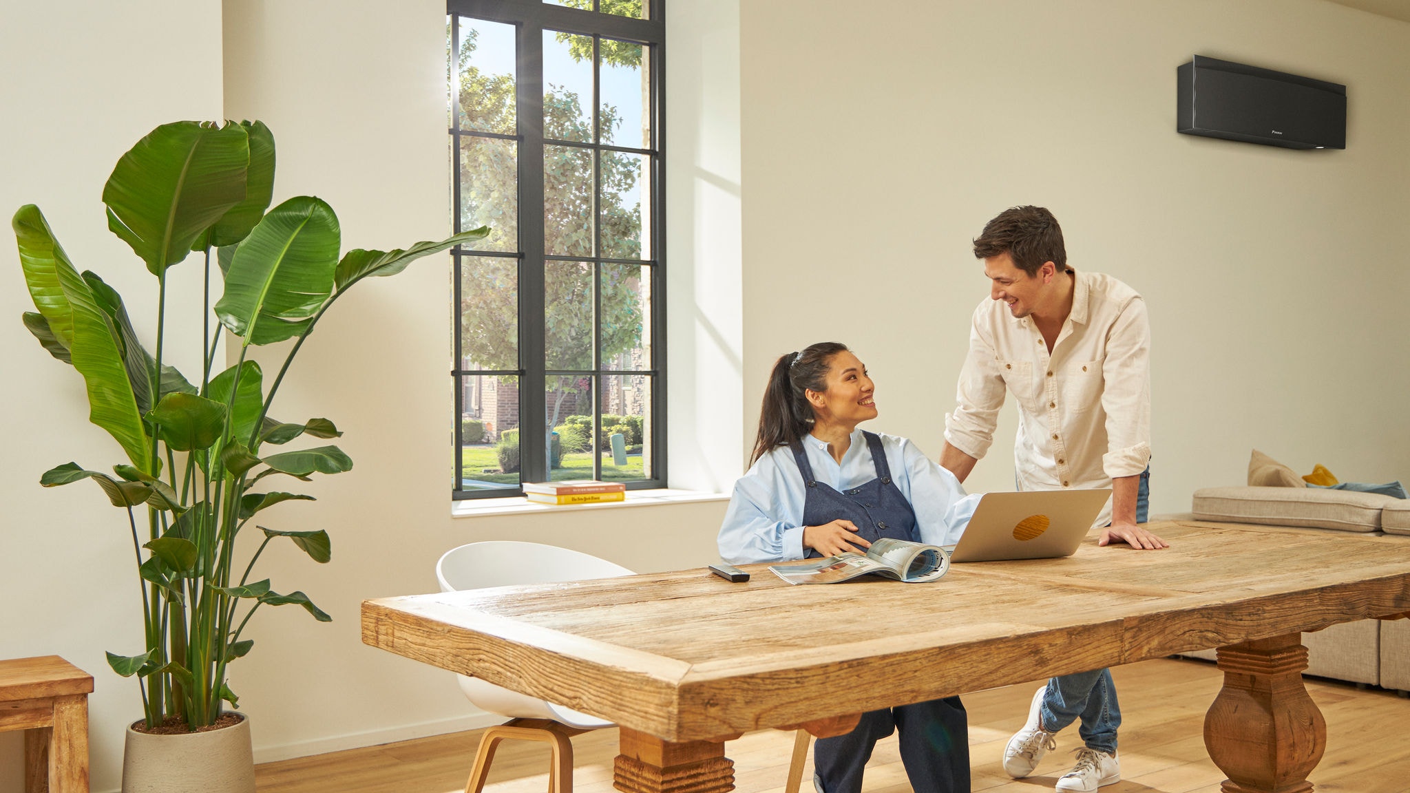 O sistema de bomba de calor ar-ar "multi" permite-lhe ligar até cinco unidades interiores a uma unidade exterior. As unidades interiores podem ter diversos tamanhos e estilos para se adequarem às necessidades e ao design do espaço, assegurando que dispõe de aquecimento e arrefecimento eficazes na sua habitação. Além disso, pode fazer variar a temperatura em cada divisão.