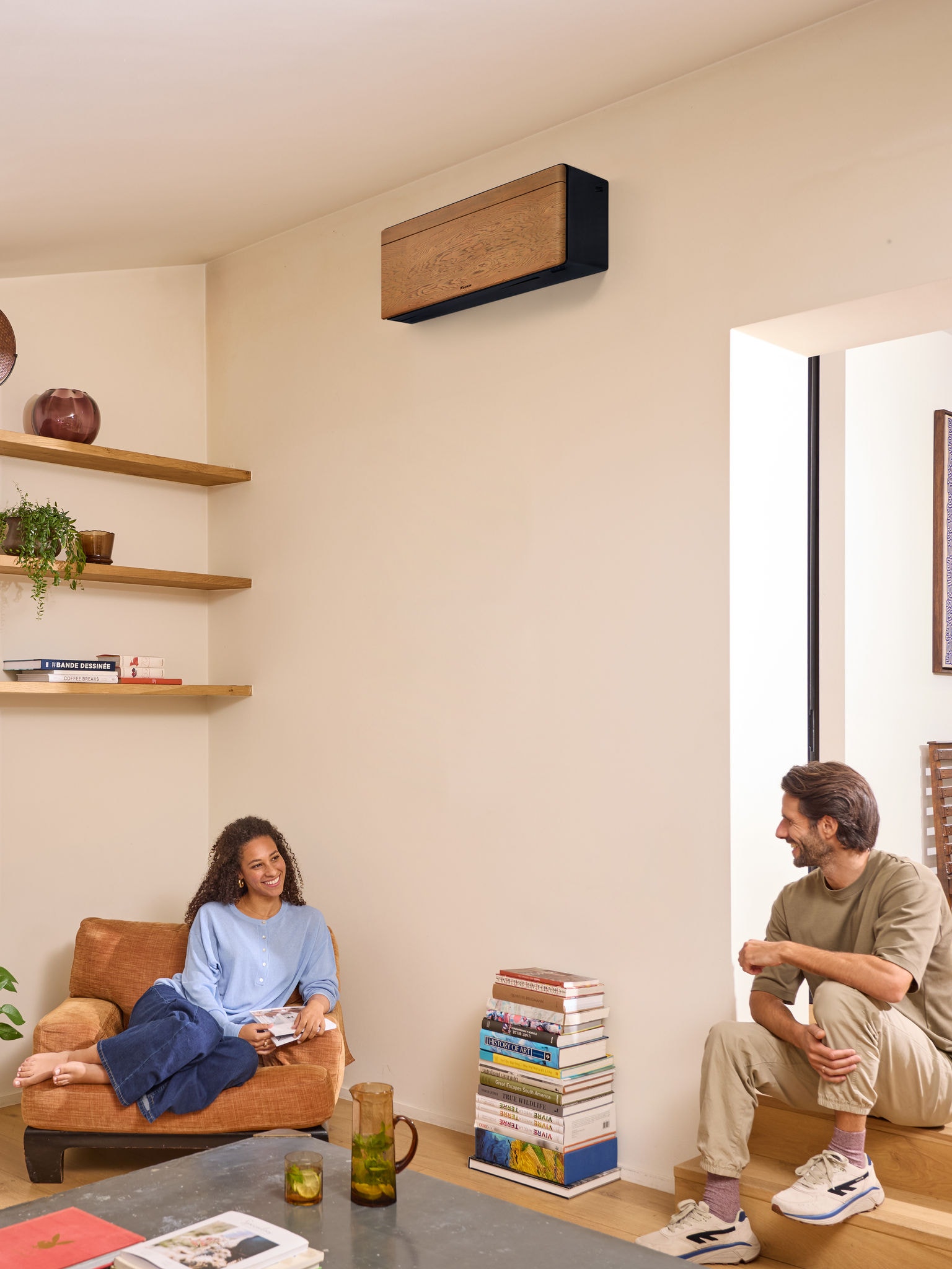 Os modelos murais (Stylish, Ururu Sarara, Daikin Emura, Perfera) estão disponíveis em diferentes tamanhos e cores para combinar com o seu interior.