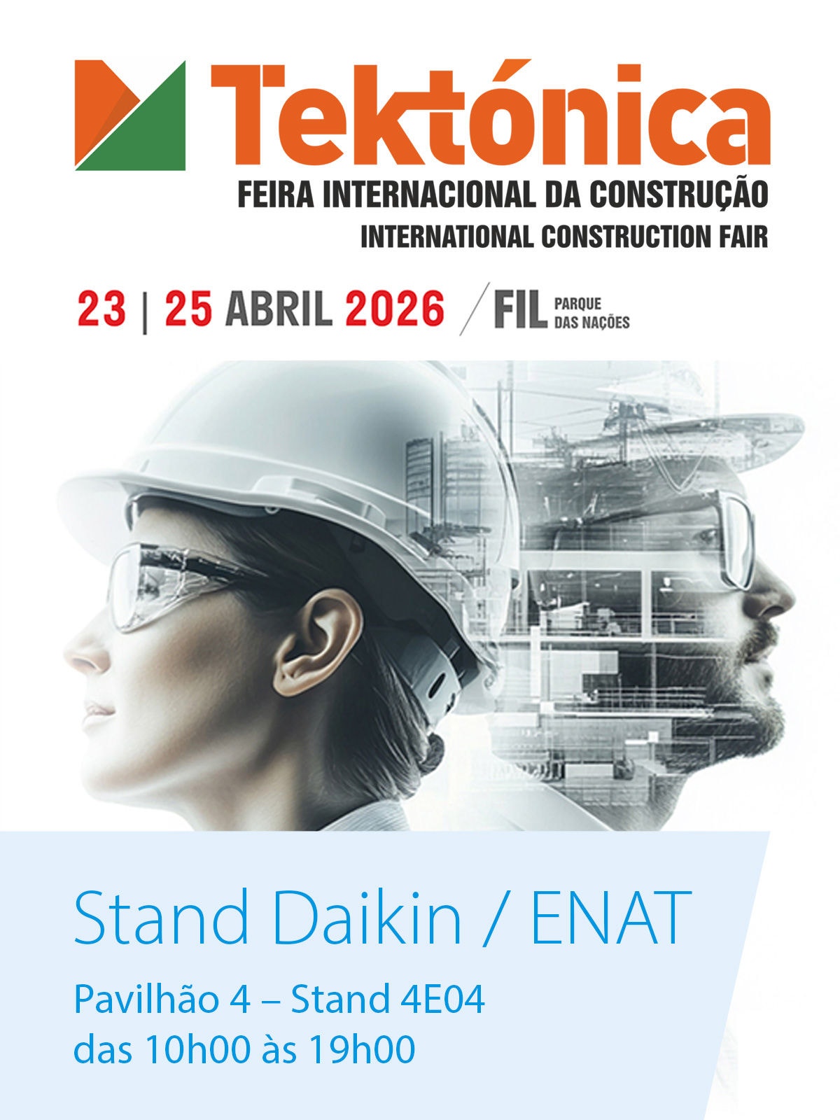 A Daikin Portugal estará uma vez mais presente, juntamente com o nosso parceiro ENAT. Venha ter connosco ao no Pavilhão 4 – Stand 4E04, entre as 10h00 e as 19h00, e tome contacto com uma vasta gama de produtos, soluções e muitas novidades em exposição.