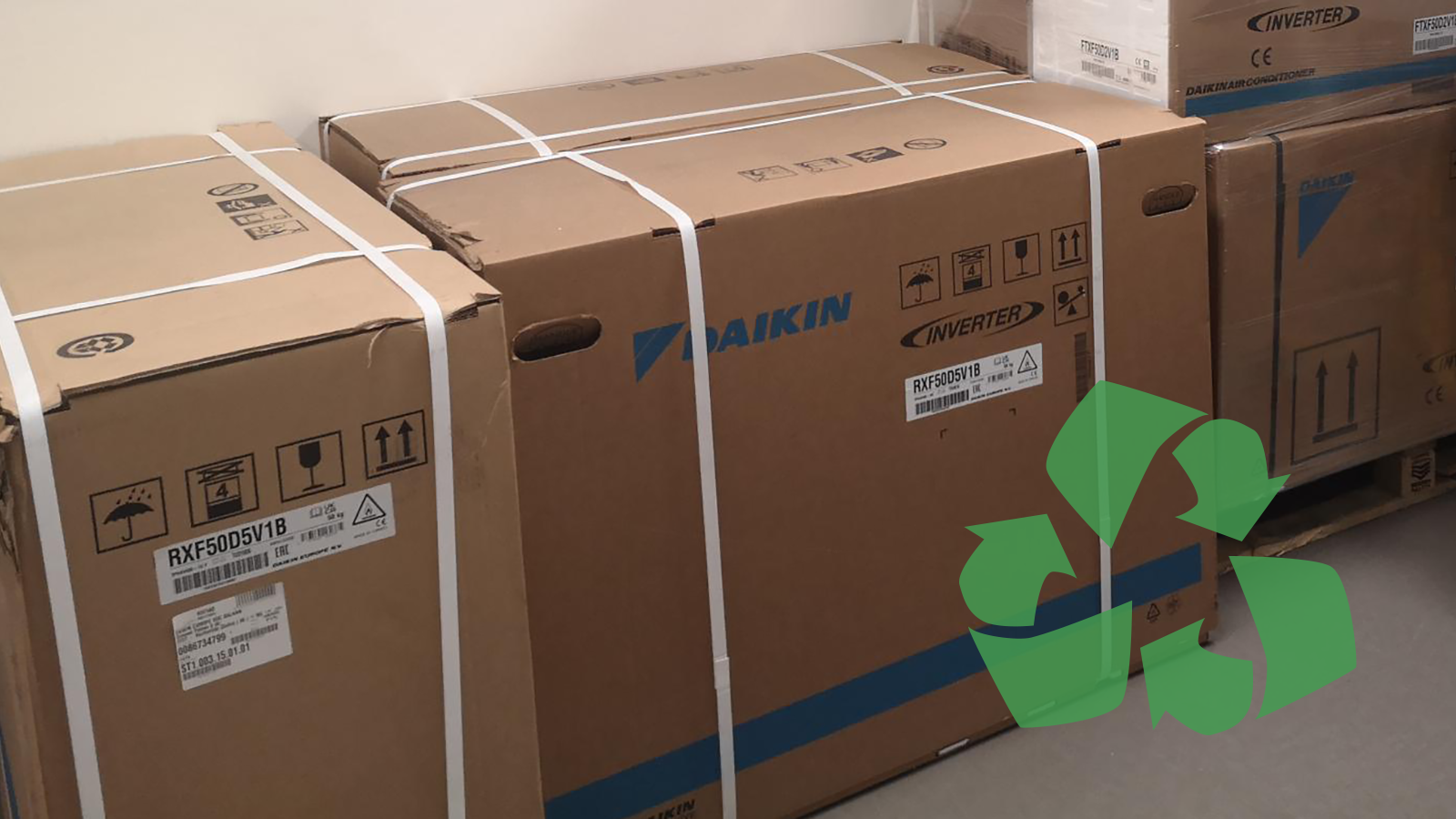 As embalagens dos produtos Daikin são compostas por cartão, sacos, esferovite e filme protetor.